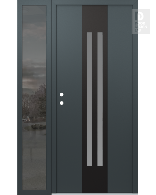 Modern Steel Front Door DIAMOND A8 50" X 80" ANTHRACITE/ANTHRACITE FROSTED GLASS PANEL BLACK LHI WITH SIDELITE MIRRORED GLASS