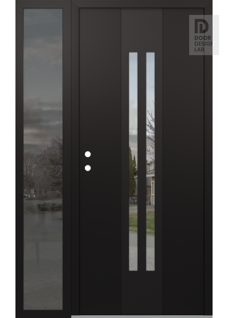 Modern Steel Front Door DIAMOND A8 50" X 80" BLACK/BLACK CLEAR GLASS PANEL BLACK LHI WITH SIDELITE MIRRORED GLASS