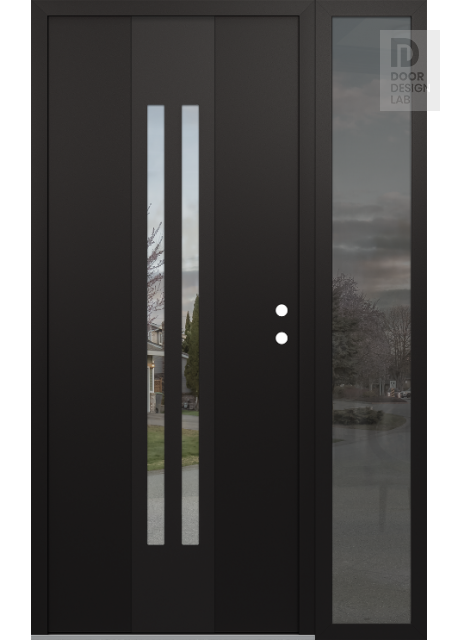 Modern Steel Front Door DIAMOND A8 50" X 80" BLACK/BLACK CLEAR GLASS PANEL BLACK RHI WITH SIDELITE MIRRORED GLASS