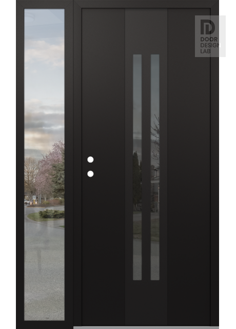 Modern Steel Front Door DIAMOND A8 50" X 80" BLACK/BLACK MIRRORED GLASS PANEL BLACK LHI WITH SIDELITE CLEAR GLASS