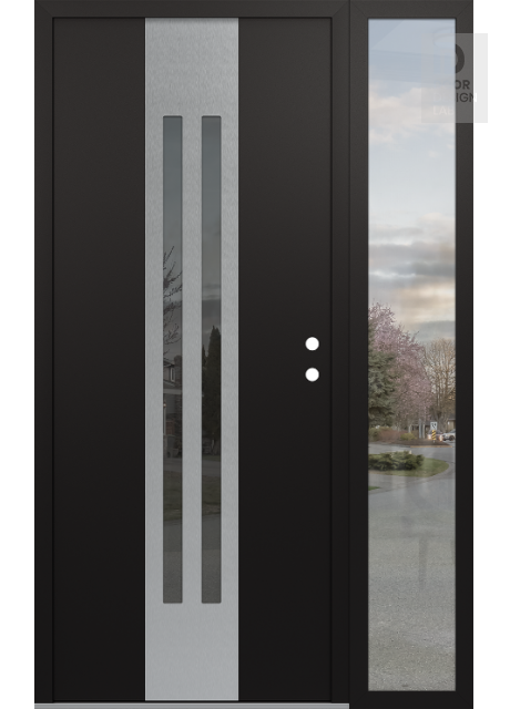 Modern Steel Front Door DIAMOND A8 50" X 80" BLACK/BLACK MIRRORED GLASS PANEL STAINLESS STEEL RHI WITH SIDELITE CLEAR GLASS