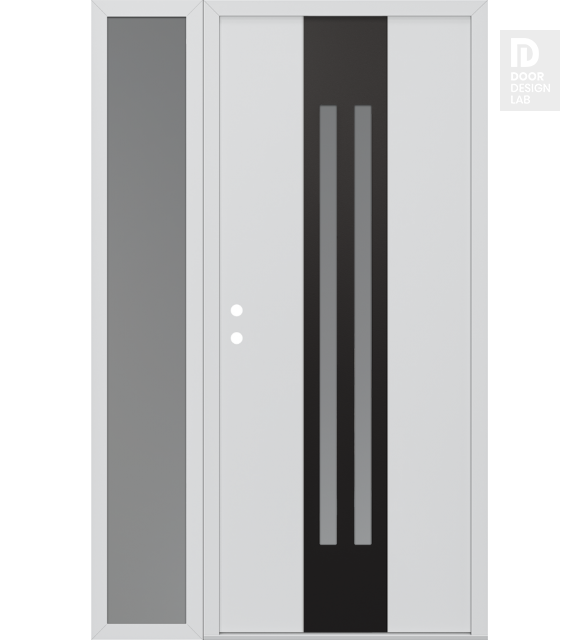 Modern Steel Front Door DIAMOND A8 50" X 80" BLACK/WHITE FROSTED GLASS PANEL BLACK LHI WITH SIDELITE FROSTED GLASS