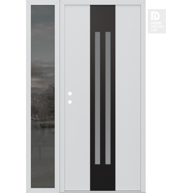 Modern Steel Front Door DIAMOND A8 50" X 80" BLACK/WHITE FROSTED GLASS PANEL BLACK LHI WITH SIDELITE MIRRORED GLASS