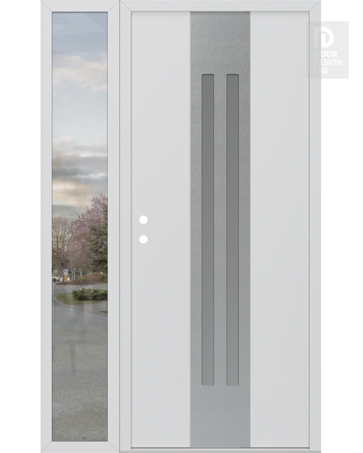 Modern Steel Front Door DIAMOND A8 50" X 80" BLACK/WHITE FROSTED GLASS PANEL STAINLESS STEEL LHI WITH SIDELITE CLEAR GLASS