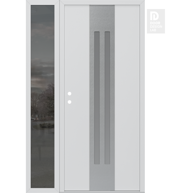 Modern Steel Front Door DIAMOND A8 50" X 80" BLACK/WHITE FROSTED GLASS PANEL STAINLESS STEEL LHI WITH SIDELITE MIRRORED GLASS