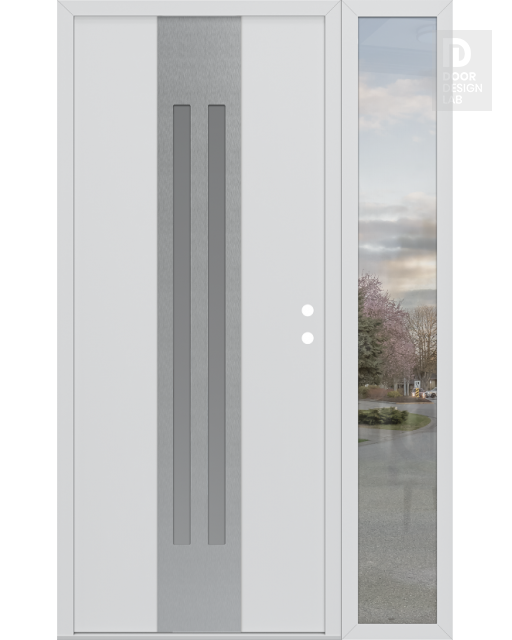 Modern Steel Front Door DIAMOND A8 50" X 80" BLACK/WHITE FROSTED GLASS PANEL STAINLESS STEEL RHI WITH SIDELITE CLEAR GLASS