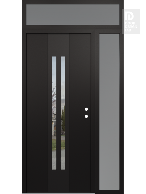 Modern Steel Front Door DIAMOND A8 50" X 96" BLACK/BLACK CLEAR GLASS PANEL BLACK RHI WITH SIDELITE AND TRANSOM FROSTED GLASS
