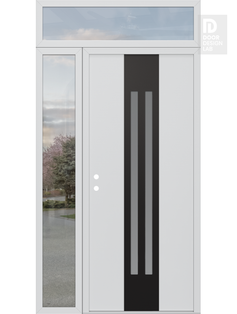 Modern Steel Front Door DIAMOND A8 50" X 96" BLACK/WHITE FROSTED GLASS PANEL BLACK LHI WITH SIDELITE AND TRANSOM CLEAR GLASS