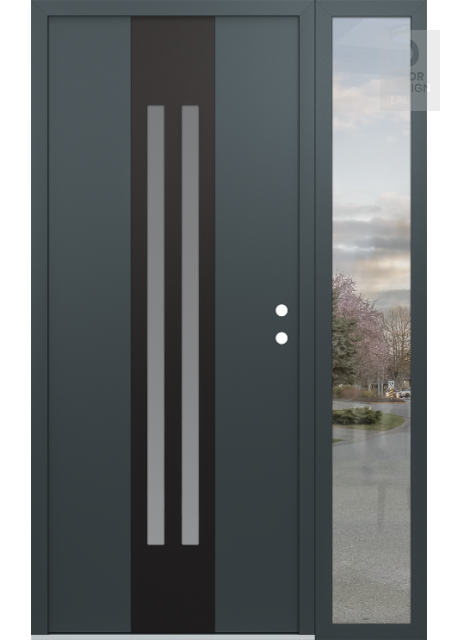 Modern Steel Front Door DIAMOND A8 52" X 80" ANTHRACITE/ANTHRACITE FROSTED GLASS PANEL BLACK RHI WITH SIDELITE CLEAR GLASS