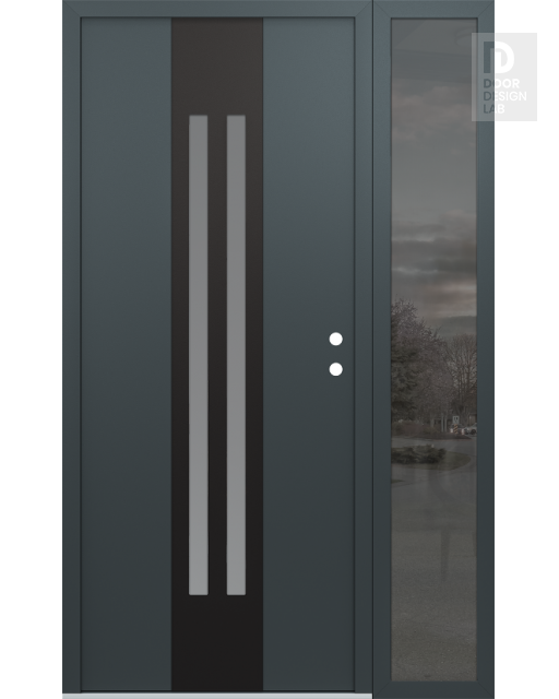 Modern Steel Front Door DIAMOND A8 52" X 80" ANTHRACITE/ANTHRACITE FROSTED GLASS PANEL BLACK RHI WITH SIDELITE MIRRORED GLASS