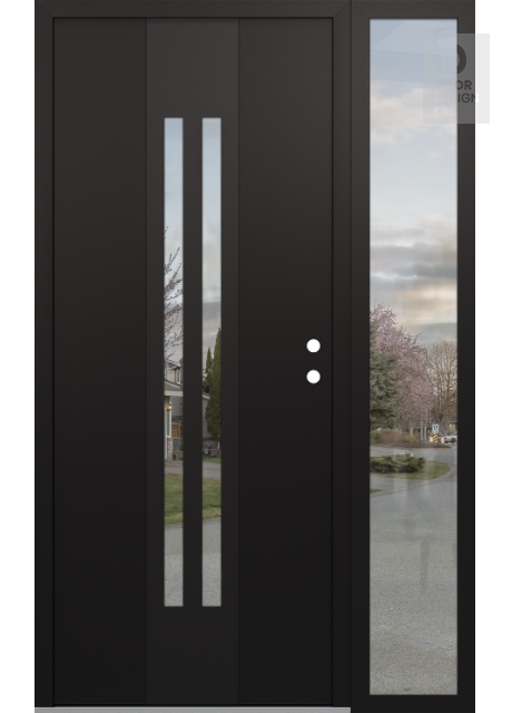 Modern Steel Front Door DIAMOND A8 52" X 80" BLACK/BLACK CLEAR GLASS PANEL BLACK RHI WITH SIDELITE CLEAR GLASS