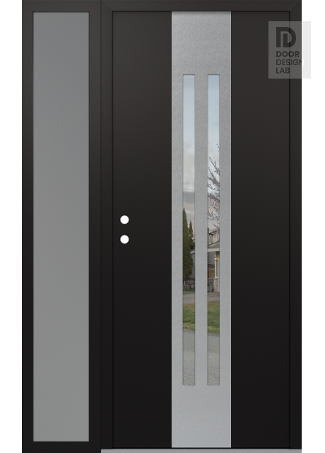 Modern Steel Front Door DIAMOND A8 52" X 80" BLACK/BLACK CLEAR GLASS PANEL STAINLESS STEEL LHI WITH SIDELITE FROSTED GLASS