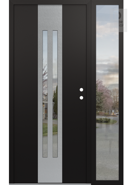 Modern Steel Front Door DIAMOND A8 52" X 80" BLACK/BLACK CLEAR GLASS PANEL STAINLESS STEEL RHI WITH SIDELITE CLEAR GLASS