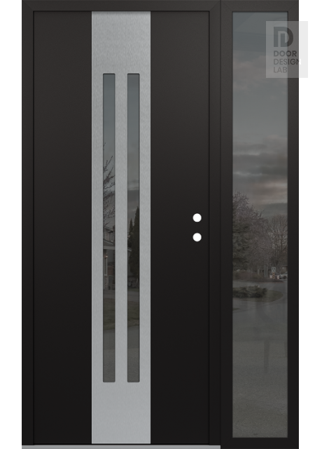 Modern Steel Front Door DIAMOND A8 52" X 80" BLACK/BLACK MIRRORED GLASS PANEL STAINLESS STEEL RHI WITH SIDELITE MIRRORED GLASS