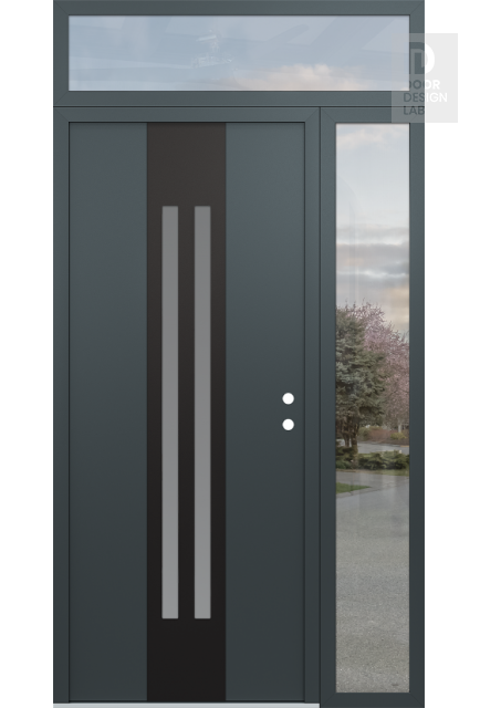 Modern Steel Front Door DIAMOND A8 52" X 96" ANTHRACITE/ANTHRACITE FROSTED GLASS PANEL BLACK RHI WITH SIDELITE AND TRANSOM CLEAR GLASS