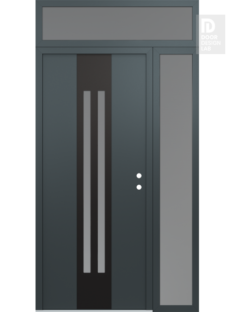 Modern Steel Front Door DIAMOND A8 52" X 96" ANTHRACITE/ANTHRACITE FROSTED GLASS PANEL BLACK RHI WITH SIDELITE AND TRANSOM FROSTED GLASS