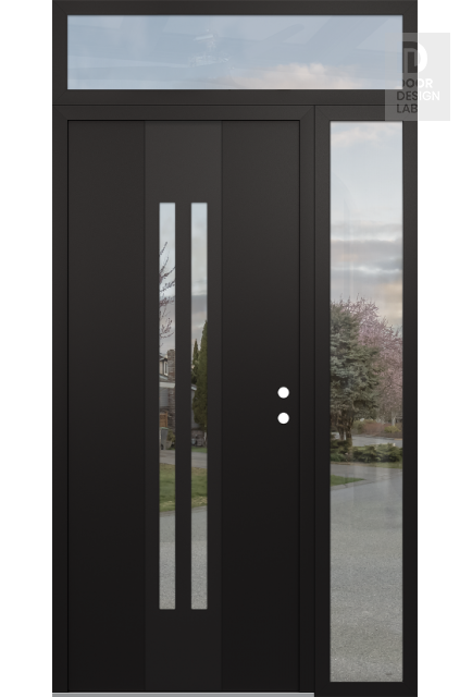 Modern Steel Front Door DIAMOND A8 52" X 96" BLACK/BLACK CLEAR GLASS PANEL BLACK RHI WITH SIDELITE AND TRANSOM CLEAR GLASS