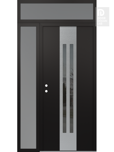 Modern Steel Front Door DIAMOND A8 52" X 96" BLACK/BLACK MIRRORED GLASS PANEL STAINLESS STEEL LHI WITH SIDELITE AND TRANSOM FROSTED GLASS