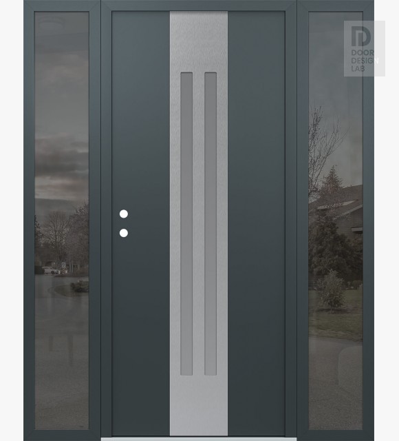 Modern Steel Front Door DIAMOND A8 60" X 80" ANTHRACITE/ANTHRACITE FROSTED GLASS PANEL STAINLESS STEEL LHI WITH 2 SIDELITES MIRRORED GLASS