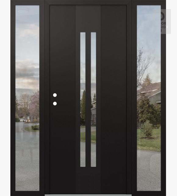 Modern Steel Front Door DIAMOND A8 60" X 80" BLACK/BLACK CLEAR GLASS PANEL BLACK LHI WITH 2 SIDELITES CLEAR GLASS