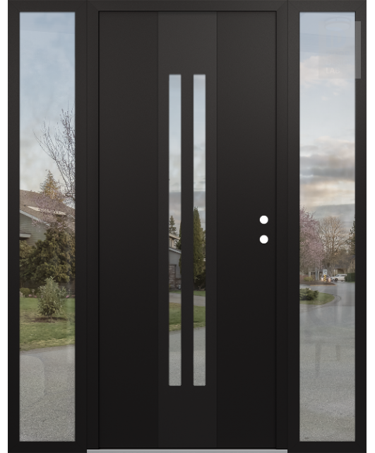 Modern Steel Front Door DIAMOND A8 60" X 80" BLACK/BLACK CLEAR GLASS PANEL BLACK RHI WITH 2 SIDELITES CLEAR GLASS
