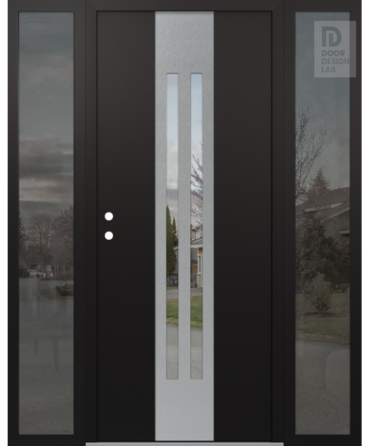 Modern Steel Front Door DIAMOND A8 60" X 80" BLACK/BLACK CLEAR GLASS PANEL STAINLESS STEEL LHI WITH 2 SIDELITES MIRRORED GLASS