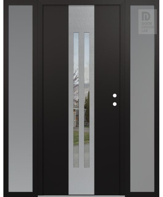 Modern Steel Front Door DIAMOND A8 60" X 80" BLACK/BLACK CLEAR GLASS PANEL STAINLESS STEEL RHI WITH 2 SIDELITES FROSTED GLASS