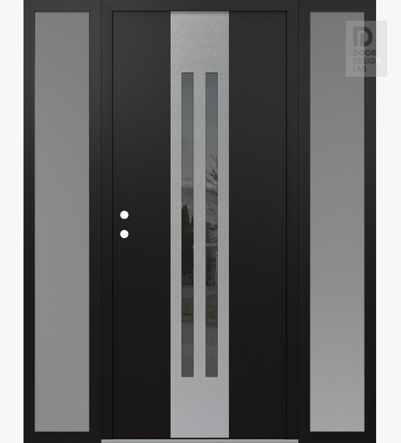 Modern Steel Front Door DIAMOND A8 60" X 80" BLACK/BLACK MIRRORED GLASS PANEL STAINLESS STEEL LHI WITH 2 SIDELITES FROSTED GLASS