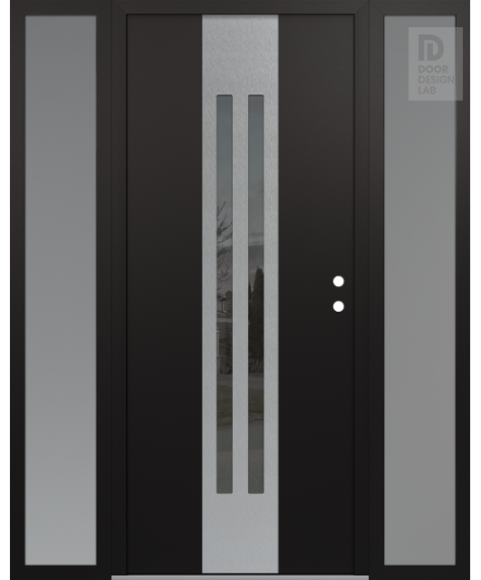 Modern Steel Front Door DIAMOND A8 60" X 80" BLACK/BLACK MIRRORED GLASS PANEL STAINLESS STEEL RHI WITH 2 SIDELITES FROSTED GLASS