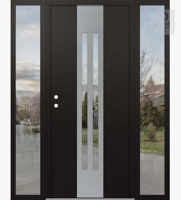 Modern Steel Front Door DIAMOND A8 64" X 80" BLACK/BLACK CLEAR GLASS PANEL STAINLESS STEEL LHI WITH 2 SIDELITES CLEAR GLASS