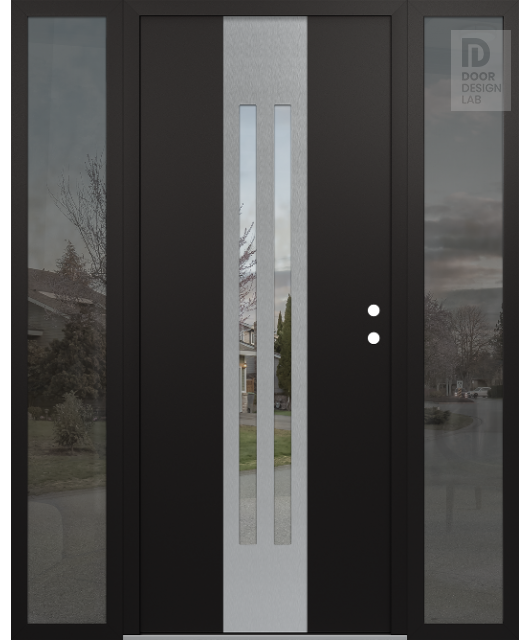 Modern Steel Front Door DIAMOND A8 64" X 80" BLACK/BLACK CLEAR GLASS PANEL STAINLESS STEEL RHI WITH 2 SIDELITES MIRRORED GLASS