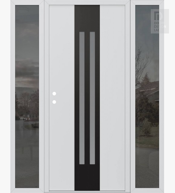 Modern Steel Front Door DIAMOND A8 64" X 80" BLACK/WHITE FROSTED GLASS PANEL BLACK LHI WITH 2 SIDELITES MIRRORED GLASS