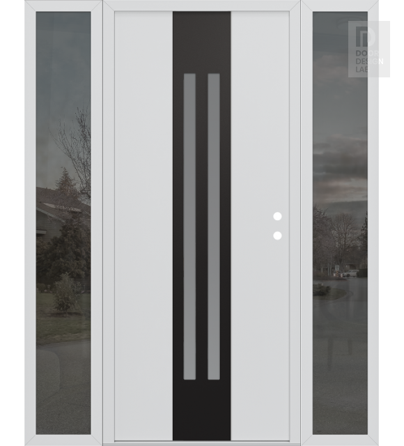 Modern Steel Front Door DIAMOND A8 64" X 80" BLACK/WHITE FROSTED GLASS PANEL BLACK RHI WITH 2 SIDELITES MIRRORED GLASS