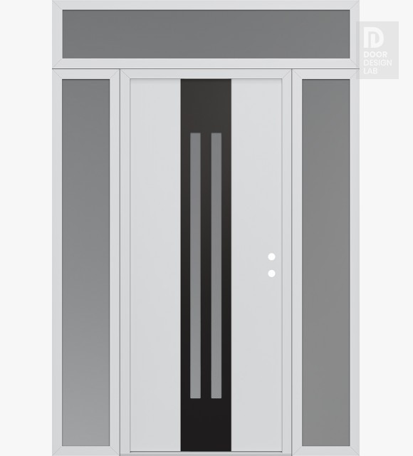Modern Steel Front Door DIAMOND A8 64" X 96" BLACK/WHITE FROSTED GLASS PANEL BLACK RHI WITH 2 SIDELITES AND TRANSOM FROSTED GLASS
