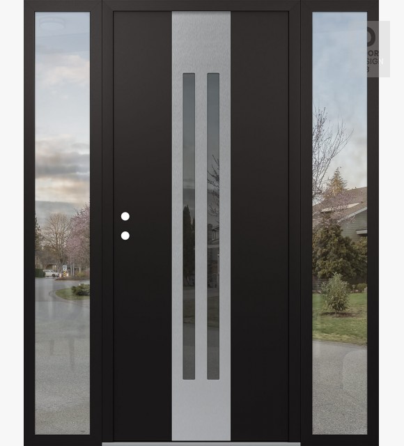 Modern Steel Front Door DIAMOND A8 68" X 80" BLACK/BLACK MIRRORED GLASS PANEL STAINLESS STEEL LHI WITH 2 SIDELITES CLEAR GLASS
