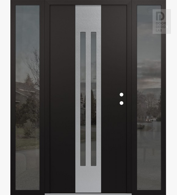 Modern Steel Front Door DIAMOND A8 68" X 80" BLACK/BLACK MIRRORED GLASS PANEL STAINLESS STEEL RHI WITH 2 SIDELITES MIRRORED GLASS