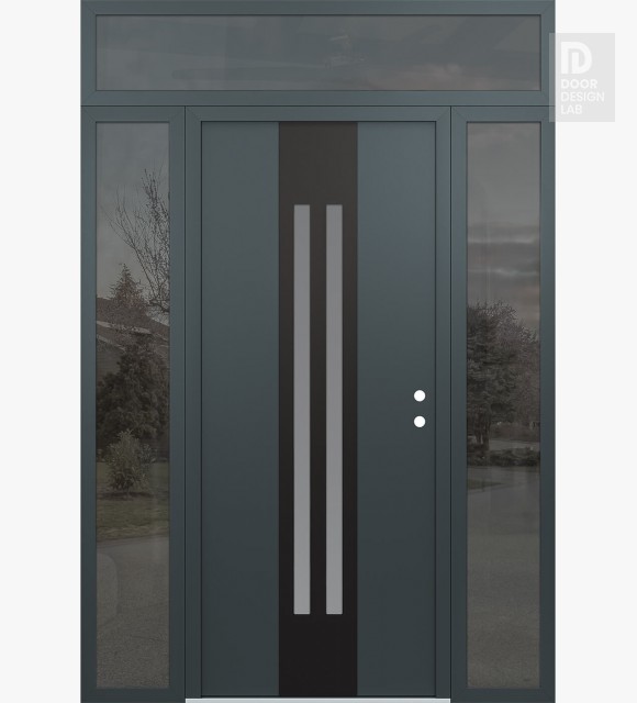Modern Steel Front Door DIAMOND A8 68" X 96" ANTHRACITE/ANTHRACITE FROSTED GLASS PANEL BLACK RHI WITH 2 SIDELITES AND TRANSOM MIRRORED GLASS