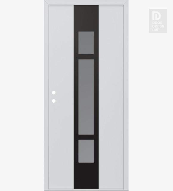 Modern Steel Front Door DIAMOND A9 36" X 80" BLACK/WHITE FROSTED GLASS PANEL BLACK LHI