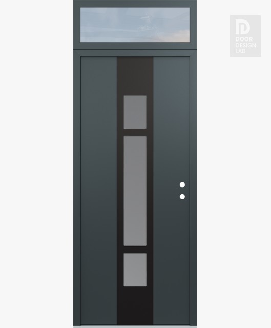 Modern Steel Front Door DIAMOND A9 36" X 96" ANTHRACITE/ANTHRACITE FROSTED GLASS PANEL BLACK RHI WITH TRANSOM CLEAR GLASS