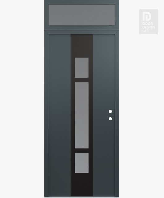Modern Steel Front Door DIAMOND A9 36" X 96" ANTHRACITE/ANTHRACITE FROSTED GLASS PANEL BLACK RHI WITH TRANSOM FROSTED GLASS
