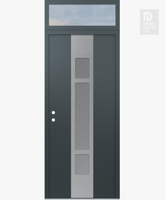 Modern Steel Front Door DIAMOND A9 36" X 96" ANTHRACITE/ANTHRACITE FROSTED GLASS PANEL STAINLESS STEEL LHI WITH TRANSOM CLEAR GLASS