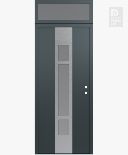 Modern Steel Front Door DIAMOND A9 36" X 96" ANTHRACITE/ANTHRACITE FROSTED GLASS PANEL STAINLESS STEEL RHI WITH TRANSOM FROSTED GLASS