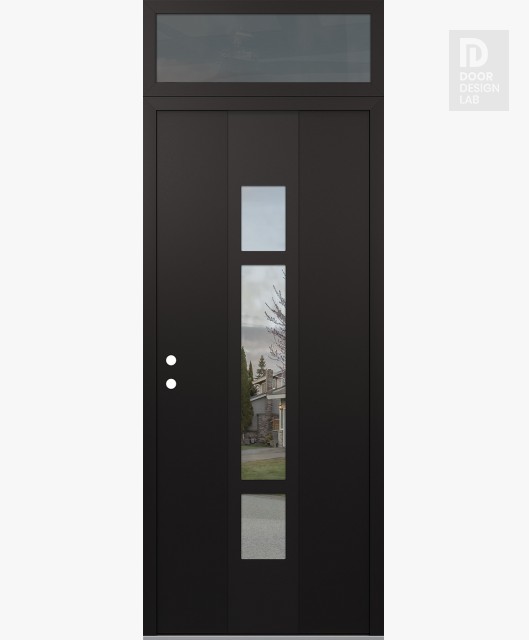Modern Steel Front Door DIAMOND A9 36" X 96" BLACK/BLACK CLEAR GLASS PANEL BLACK LHI WITH TRANSOM MIRRORED GLASS