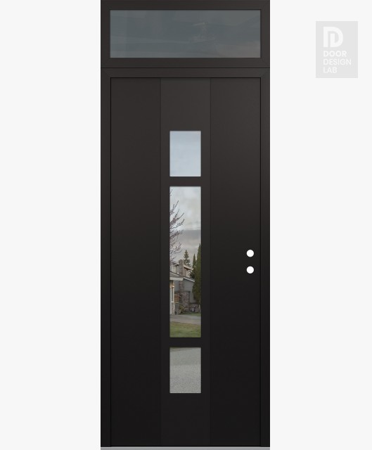 Modern Steel Front Door DIAMOND A9 36" X 96" BLACK/BLACK CLEAR GLASS PANEL BLACK RHI WITH TRANSOM MIRRORED GLASS