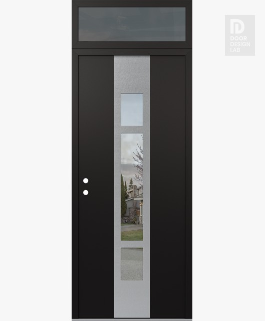 Modern Steel Front Door DIAMOND A9 36" X 96" BLACK/BLACK CLEAR GLASS PANEL STAINLESS STEEL LHI WITH TRANSOM MIRRORED GLASS