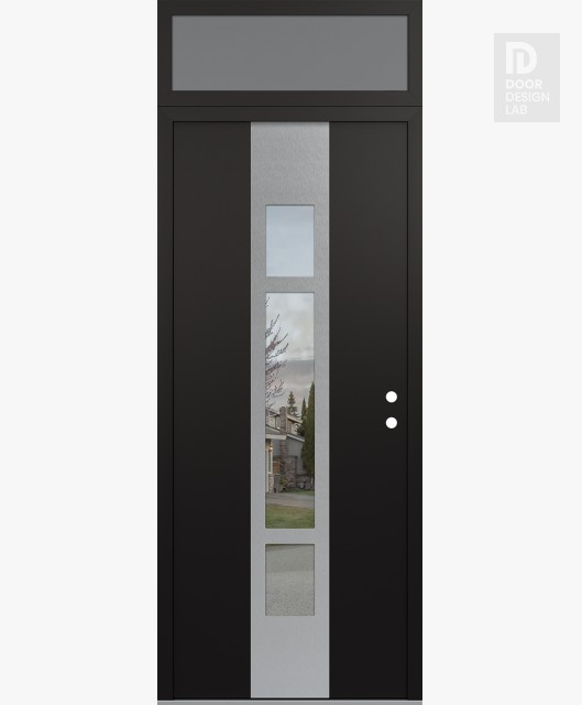 Modern Steel Front Door DIAMOND A9 36" X 96" BLACK/BLACK CLEAR GLASS PANEL STAINLESS STEEL RHI WITH TRANSOM FROSTED GLASS
