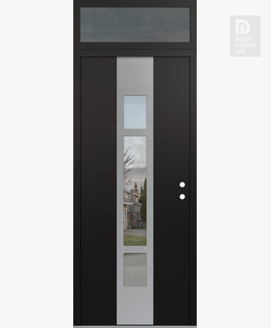 Modern Steel Front Door DIAMOND A9 36" X 96" BLACK/BLACK CLEAR GLASS PANEL STAINLESS STEEL RHI WITH TRANSOM MIRRORED GLASS