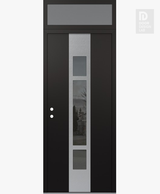 Modern Steel Front Door DIAMOND A9 36" X 96" BLACK/BLACK MIRRORED GLASS PANEL STAINLESS STEEL LHI WITH TRANSOM FROSTED GLASS