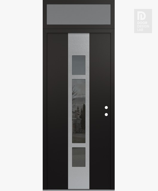Modern Steel Front Door DIAMOND A9 36" X 96" BLACK/BLACK MIRRORED GLASS PANEL STAINLESS STEEL RHI WITH TRANSOM FROSTED GLASS