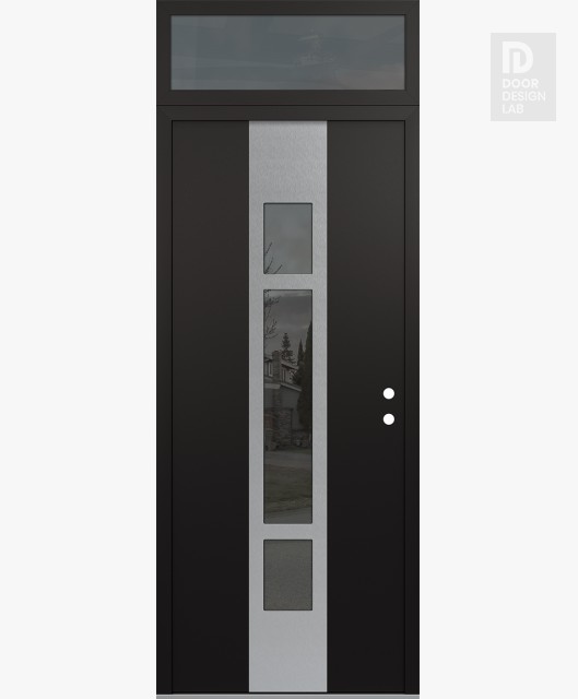 Modern Steel Front Door DIAMOND A9 36" X 96" BLACK/BLACK MIRRORED GLASS PANEL STAINLESS STEEL RHI WITH TRANSOM MIRRORED GLASS